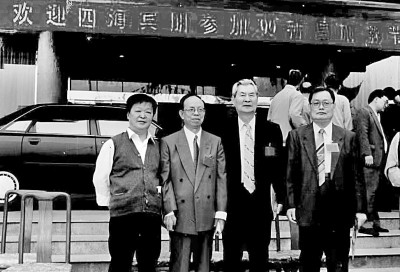 竺岳兵(左一)与学者傅璇琮(左二)、周勋初(左三)、郁贤皓在一起。