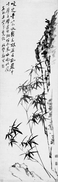 清代郑燮《托根乱岩图》描绘了悬崖边挺立的毛竹,题诗:“咬定青山不放松,立根原在乱岩中。千磨万击还坚劲,任尔东西南北风。”(据原画)作品生动表现了竹子的顽强生命力和画家的坚定信念。