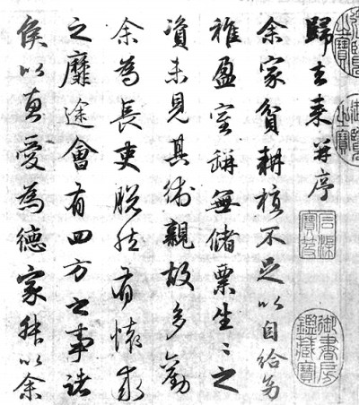 这首诗中的“熙熙令音”一段,明显是学习《豳风·七月》。从生活传统变迁角度来看,从两汉到魏晋,士人的生活方式也有变化。汉代重视力田,寒素士人在读书的同时,多从事躬耕。其例甚多。如大家熟悉的朱买臣。魏晋以后,士族庄园经济逐渐形成。这种庄园具有农业经济的功能,当时称为“丘园”。谢灵运《答中书》诗中有云:“在昔先师,任诚师天。刻意岂高,江海非闲。守道顺性,乐兹丘园。”又有《陇西行》:“耿耿僚志,慊慊丘园。”晋宋之际的士人,如谢灵运、颜延之等人,讨论田园乃至耕植之风,颇见其迹。但士族多非真正躬耕,其“丘园”闲居或隐逸,多与山水合流,并未立即形成田园诗的风气。不仅如此,同时还有一种轻视田园的意识在发生。而陶渊明是反对这种轻视田园意识的。黄庭坚《论诗帖》云:“陶渊明诗长于丘园,信所谓有味其言者。”则陶之田园,亦即当时的“丘园”。但陶不言丘园而言田园,正因其志在躬耕之意。正是这种对当时一般士族观念的突破,使陶渊明形成了既不同于当时农人、亦不同于士族的田园之美的审美趣味,在悠久的田园书写传统中,取得了一种新的突破,创造出一种农耕文明与士大夫精神生活相结合的中国古代田园诗传统。