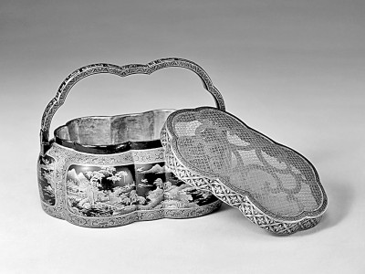 故宫藏黑漆描金开光山水图手炉 图片由演讲人提供