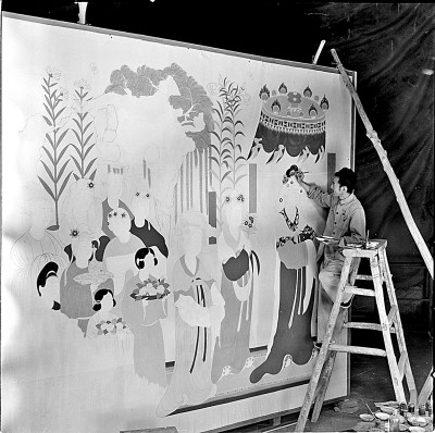 1959年,段文杰在临摹“都督夫人礼佛图”。