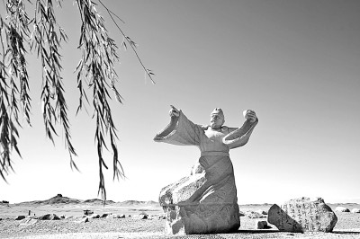 甘肃省敦煌市阳关景区的唐朝诗人王维像。新华社发