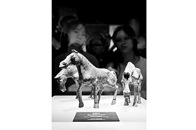 游客在邯郸市博物馆观看赵王陵二号陵出土的战国时期的青铜马。 新华社发
