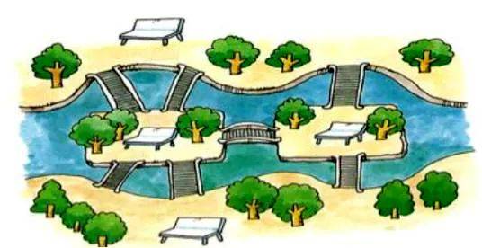 ⒊其他情况的图都不能一笔画出。(奇点数除以2,便可算出此图需几笔画成)