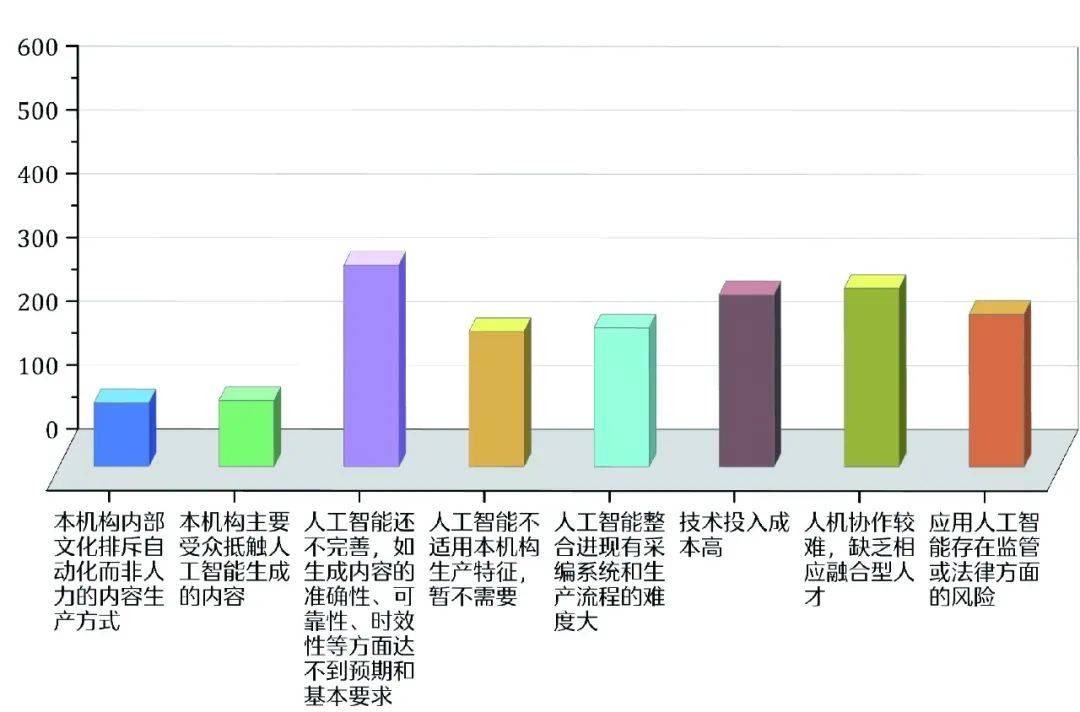 以标准化确保安全可靠。顺应人工智能时代业态变化,新闻媒体应不断改进升级新闻生产与传播标准,既充分运用技术赋能,又尽力规避技术风险。课题组调查显示,对于那些尚在观望的媒体机构,阻碍其应用生成式人工智能的首要原因正是“人工智能自身还不完善,如生成内容的准确性、可靠性、时效性等方面达不到预期和基本要求”。对此,在采集、生产、发布和传播等各个环节,新闻媒体要建立风险评估体系、完善安全保障制度。针对各类自动生成和算法推荐内容,要进一步强化事实核查机制,增强人机协同,确保信息可信可靠。