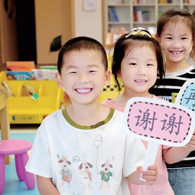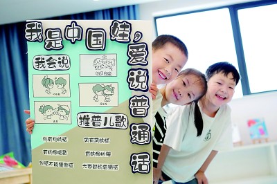 浙江省湖州市长兴县水口乡中心幼儿园开展“我是中国娃 爱说普通话”推普周活动。谭云俸摄/光明图片