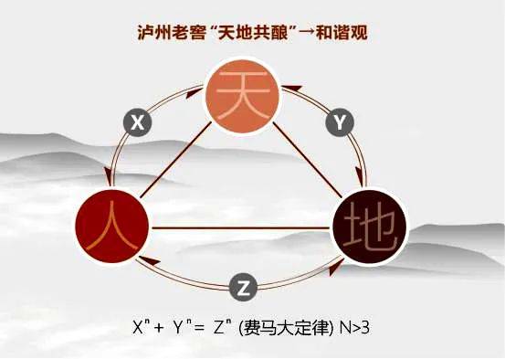 老窖天地观,从“天地同酿,人间共生”的现实逻辑到“天人耦合”的哲学精神,延伸到“云水相伴、日月赋能”。老窖天地观是由老窖独有的技艺工程体系、社会人文价值、地理自然要素,在哲学和精神层面形成的独到的思维方式、思想理念和思考维度,融合了天(地理自然)、地(技艺工程)、人(人文价值)主体的聚变能量。