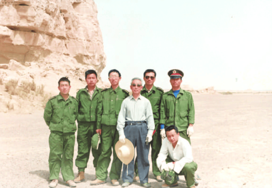 丁浩然(前排中)与战友在罗布泊(图源:四川经济报)