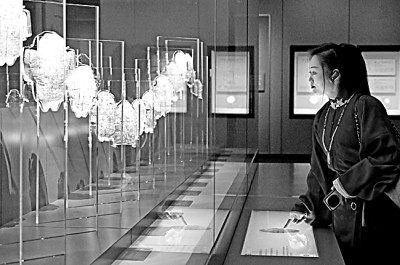 参观者在河南安阳殷墟博物馆新馆内观看展出的刻辞卜甲。新华社发