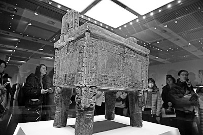中国国家博物馆展出的商代“后母戊”青铜方鼎。新华社发
