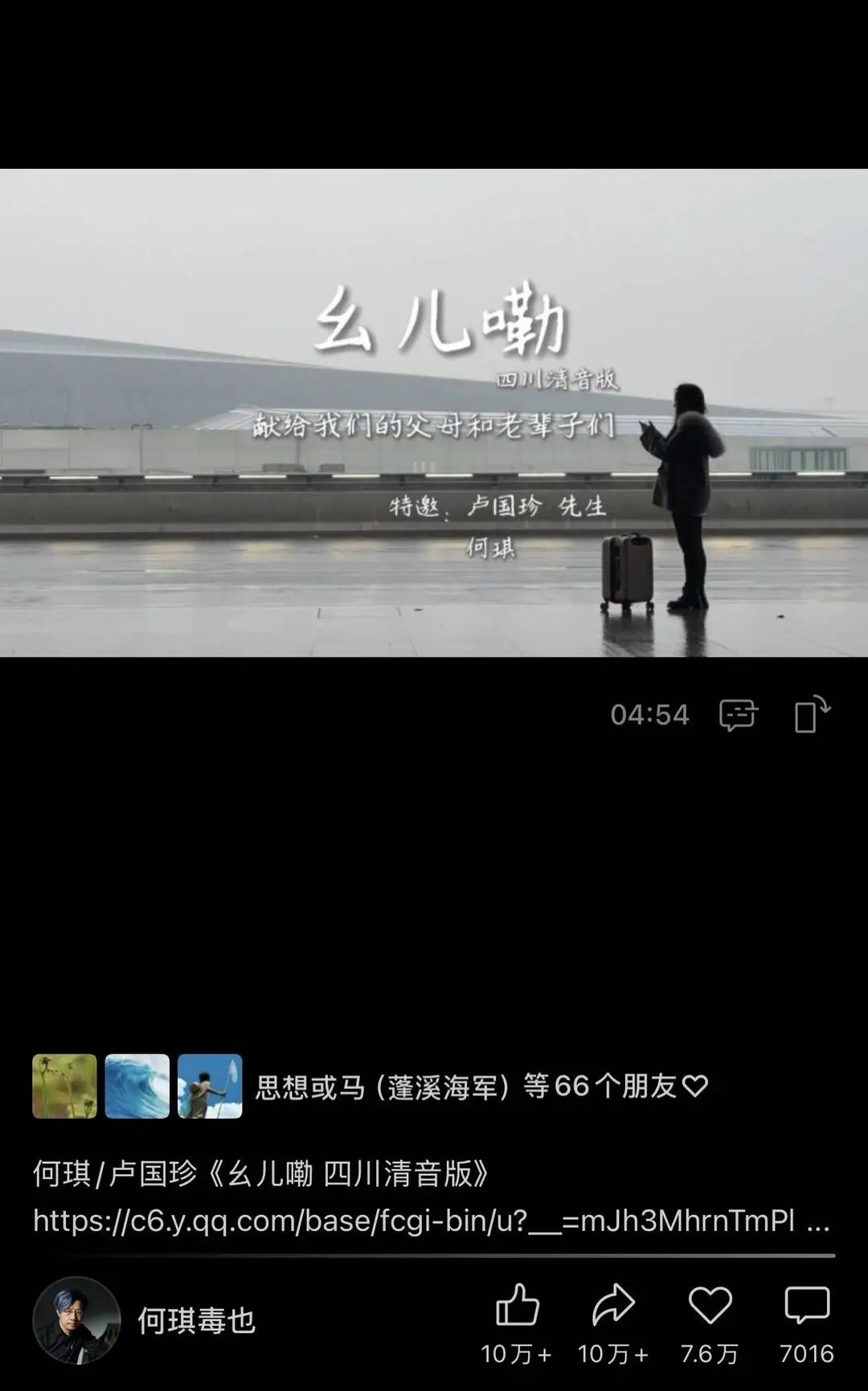 这首歌不仅是歌词的字里行间让人感动,也让“四川清音”火了。很多网友也纷纷留言,要求“出一期卢老师的采访”“科普一下四川清音”。
