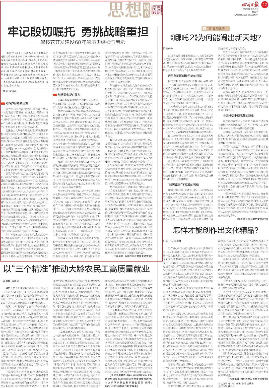 攀枝花60年开发建设与时代变局下的国家发展战略密不可分,塑造了干大事、敢担当的攀枝花。“象牙微雕钢城”“‘呆矿’变宝藏”“迄今为止我国矿山建设史上最大的一次爆破”“目前全国唯一的地级市共同富裕试验区”……从三线建设到西部大开发,从攀西战略资源创新开发试验区到共同富裕试验区,攀枝花应国家战略而生,为国家使命而战,不断书写的“攀枝花奇迹”是国家战略需求在攀枝花的有力实践,是中国共产党执政的生动注脚,是社会主义制度优越性的集中体现。唯有担当国家战略之重任,干一番前人没有干过的大事业,方能书写传奇,续写新辉煌。