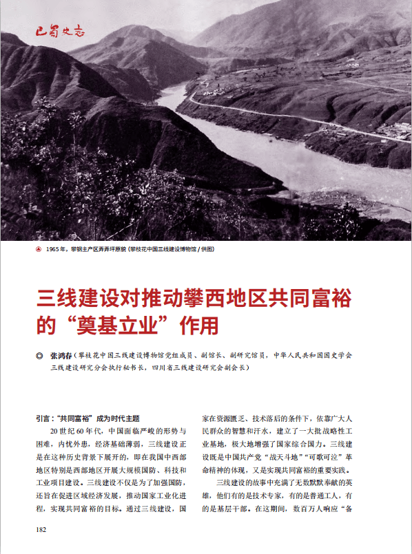 【论坛】三线建设对推动攀西地区共同富裕的“奠基立业”作用