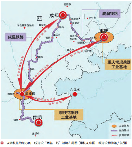 攀枝花从“七户人家一棵树”崛起为现代化钢铁基地,得益于三线建设的战略伟力。社会学家费孝通在1991年视察攀枝花时指出,攀枝花的发展对西南地区有巨大影响,应作为西南工业发展的中心和龙头,带动周边及整个西南地区的经济发展。三线建设尤其是攀枝花和成昆铁路的开发,改变了3000万人的命运,缩短了周边地区与内地的差距。三线建设是“备战时期的西部开发”,是西部摆脱贫困、走向共同富裕的战略性尝试。