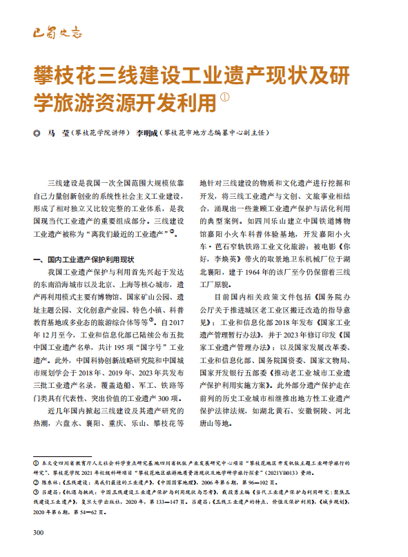 【论坛】攀枝花三线建设工业遗产现状及研学旅游资源开发利用‖马莹 李明成