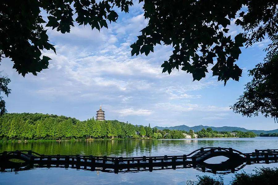 晨曦中的杭州西湖景区,雷峰塔沐浴在晨光中(新华社记者 徐昱 摄)