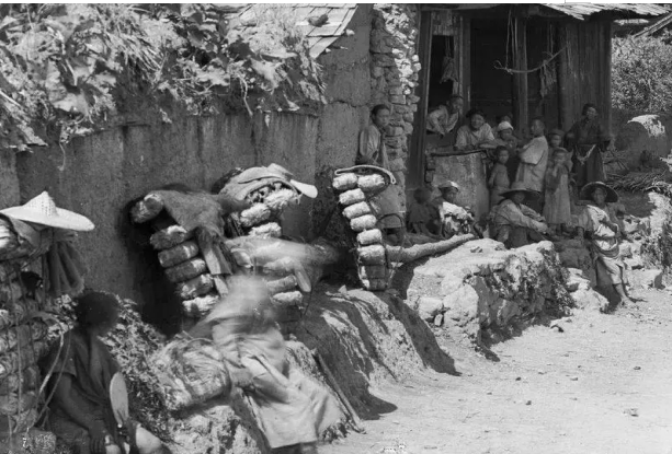 古道上的背夫(威尔逊摄于1908年汉源县飞越岭)