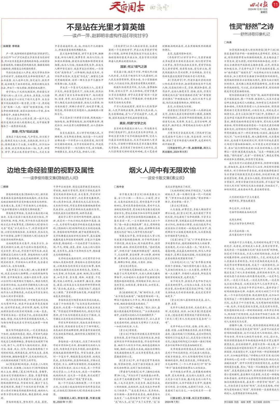 只有书写才会成就文明。《寻找甘宇》把纸笔递给平凡的小人物,用真性情、四川风格,讲出了老百姓普通人的故事,也是新时代的中国故事。