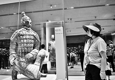 秦始皇帝陵博物院展出的兵马俑。新华社发