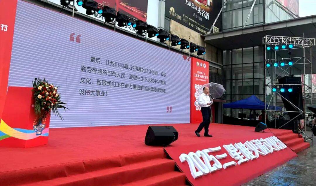 今天,我们相聚在历史悠久、文化厚重的广汉,共同见证2025中国·广汉三星堆火锅文化节盛大开幕。在这热气腾腾、香气四溢的氛围中,我们不仅品味的是巴蜀大地的美食文化,更是在感受一种时代脉动——国家战略腹地建设与地方特色产业深度融合的澎湃力量。在此,谨向本次火锅节的顺利举办表示热烈祝贺!向冒雨坚持出席开幕式的各位领导和嘉宾表示崇高敬意!向长期以来关心支持四川火锅文化与美食产业发展的各界朋友致以诚挚问候!