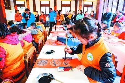 杜甫草堂博物馆开展的“小小书法家写春联”活动(赵建华 摄)