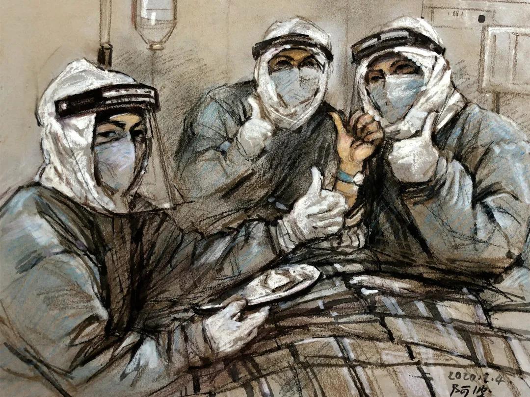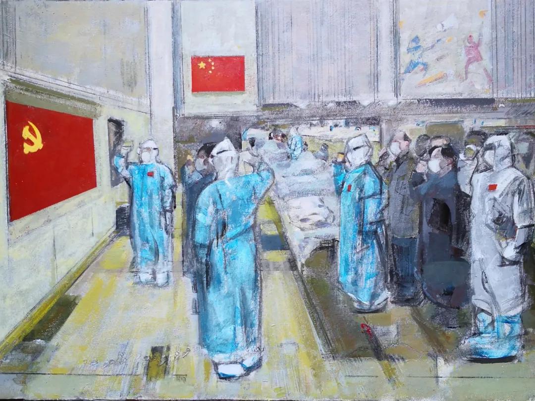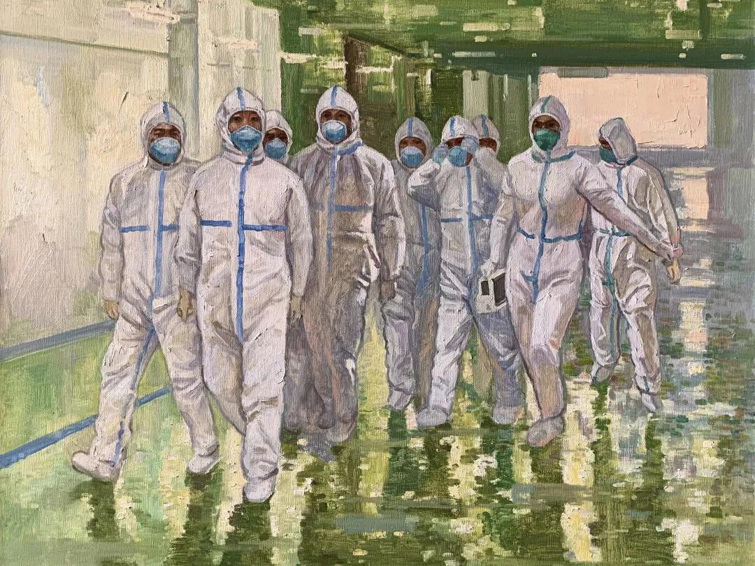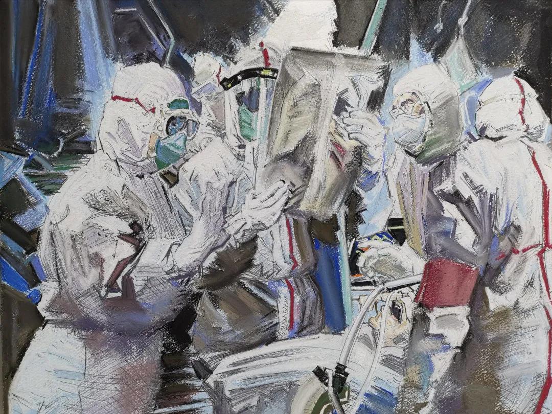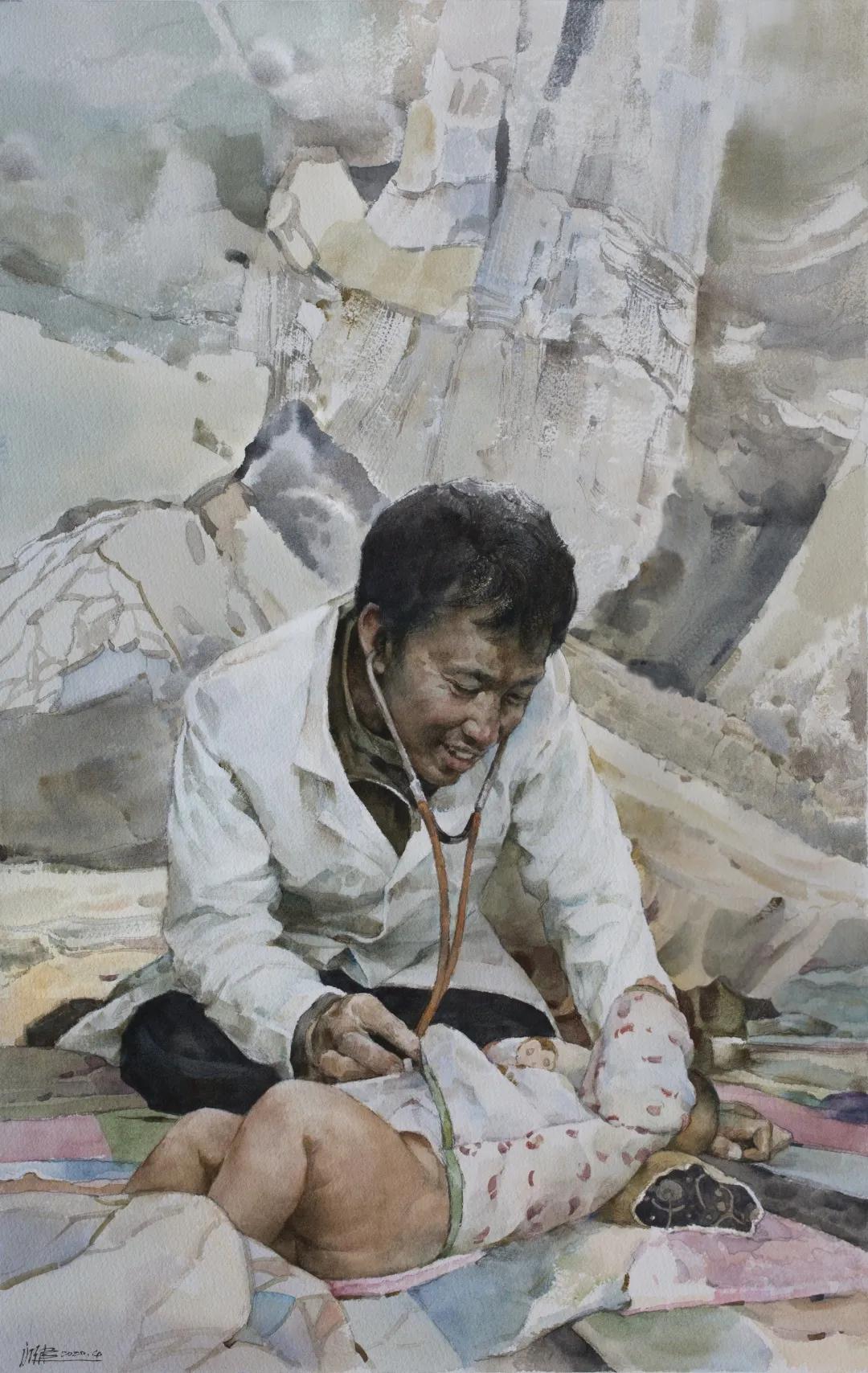 刘永健水彩画《心系苍生》——圣洁的白色,饱含医务人员对生命的敬畏,照亮以仁心仁术造福人民的信念。