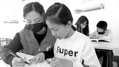 山东省聊城茌平区菜屯镇大娄庄村在家大学生为中小学生辅导学业。史奎华摄/光明图片