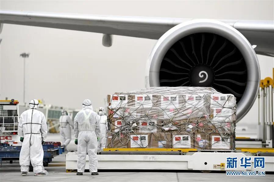 2020年4月15日,中国赴沙特阿拉伯抗疫医疗专家组从宁夏银川启程,这是工作人员在装运援助沙特阿拉伯的医疗物资(新华社记者 冯开华 摄)
