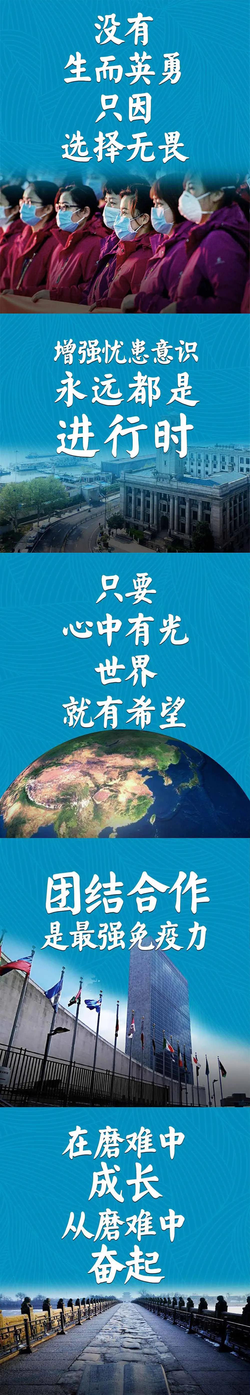 ——命运与共、天下一家。为世界安危担当,为人类健康尽责,为团结合作聚力,同舟共济,共克时艰,携手共筑人类命运共同体。
