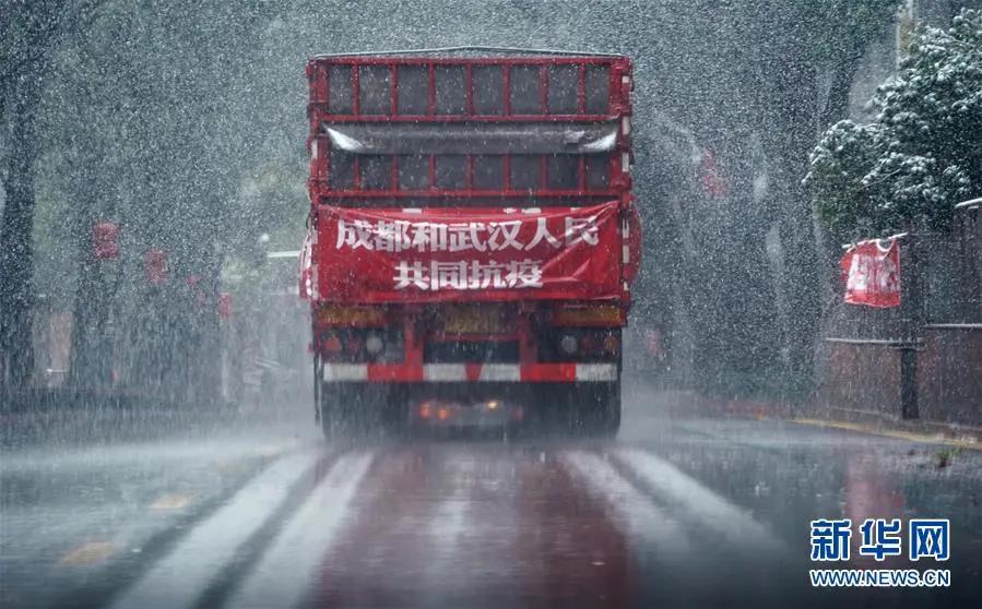 2020年2月15日,运送成都市成华区捐赠武汉消毒液的卡车在武汉市区行驶(新华社记者 王毓国 摄)