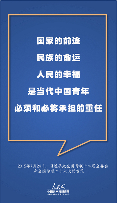 ——2015年7月24日,习近平致全国青联十二届全委会和全国学联二十六大的贺信