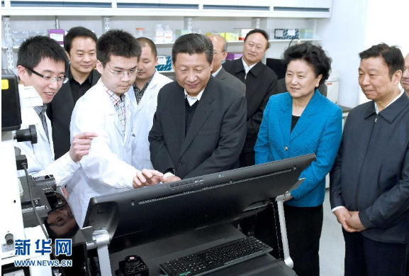 2014年5月4日,习近平在北京大学生物动态光学成像中心了解癌症早期诊断研究应用情况(新华社记者 马占成 摄)