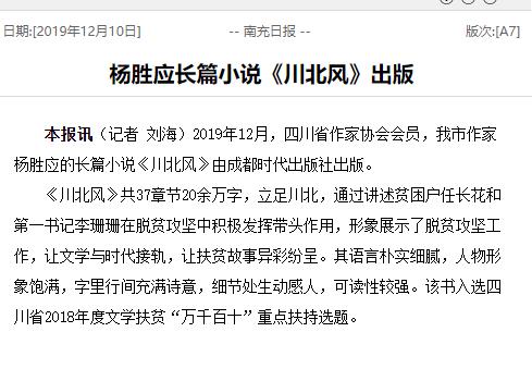 最近,我终于有时间静下心来,细细地品读完他写的脱贫攻坚题材的《川北风》。本是有感而发写个一两百字的读书笔记,只因对这本书有太多的感触,有太多的话想要表达,便情不自禁地提笔留痕,如有神助!