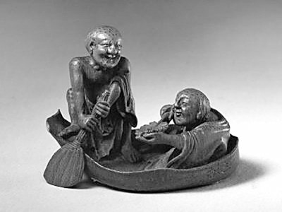 故宫博物院馆藏明代“竹雕和合二仙”,后世研究认为展现的正是寒山拾得二人风貌。资料图片