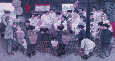 暖心——十八洞村贫困户精准识别公示会(中国画) 王奋英