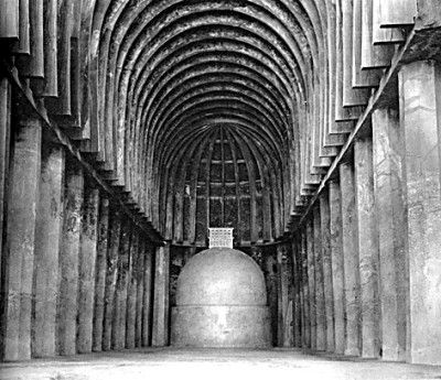 ③印度巴贾石窟12号支提窟内景。来源:《东方建筑》