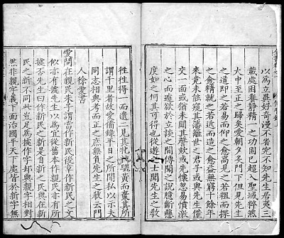 《大学》的文本中并没有讲“同体”或者“一体”,但是我们也知道大学三纲领“明明德,亲民,止于至善”,其中“亲民”二字在朱子学解释中是“新民”。阳明坚持“新”字应该做“亲”字。不仅他要把《大学》里面的“新”字做“亲”字来解释,而且还用“万物同体”即万物一体的思想来解释《大学》三纲里面的“亲民”纲领。“只发《大学》万物同体之旨”,表示他在晚年特别注重讲这个思想。当然他讲的时候,也把跟“本心”“良知”的学说加以结合。