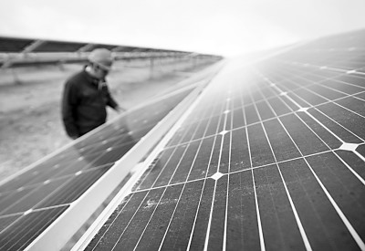 三峡新能源格尔木500MW领跑者项目工作人员查看太阳能电池组件。 新华社发