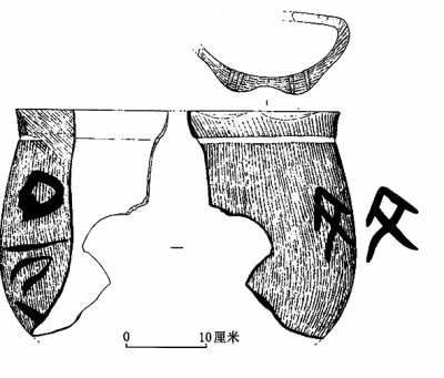 首先是文字自证,陶寺遗址也发现过文字,比如出土的陶壶上有朱砂写的两个字,其中左边的这个字(图2),有人认为是“昜”字,而我认为这个字是“尧”字,因为它上边是一个图形可能代表的是城墙、是土块,下面是一个人,中间一横为指示。