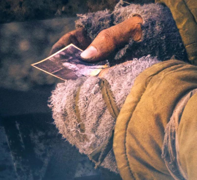 却在被冻黑的土豆硌掉牙时依然笑得灿烂…