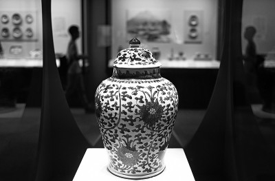北京中国国家博物馆“中国古代陶瓷海上贸易展”上展出的景德镇窑青花缠枝莲纹盖罐。新华社发