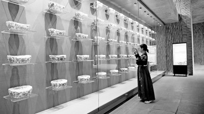 景德镇御窑博物馆内,观众在观赏展厅里的古瓷器。新华社发