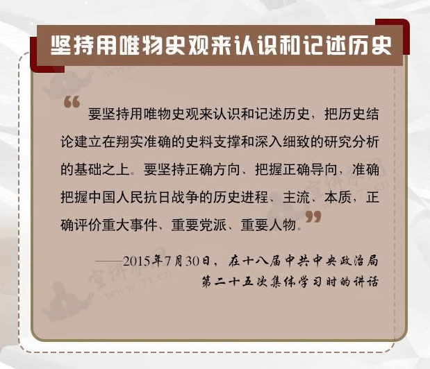 坚持实事求是。实事求是是马克思主义的精髓和灵魂,是马克思主义的根本观点,是中国共产党人认识世界、改造世界的根本要求,是我们党的思想方法、工作方法、领导方法。习近平总书记强调:“要坚持用唯物史观来认识历史,坚持实事求是的思想路线,分清主流和支流,坚持真理,修正错误,发扬经验,吸取教训。”实事求是是认识真理的基本途径,在任何情况下我们都要坚持从客观存在的实际出发看待问题,而不是把主观臆断强加于实际之上,要坚持把实践作为检验真理的唯一标准。在历史研究中坚持实事求是的基本原则,就要坚持一切从历史实际出发,讲证据、讲规范、讲方法,对研究材料去伪存真,找出历史发展的内在联系,得出科学的结论。