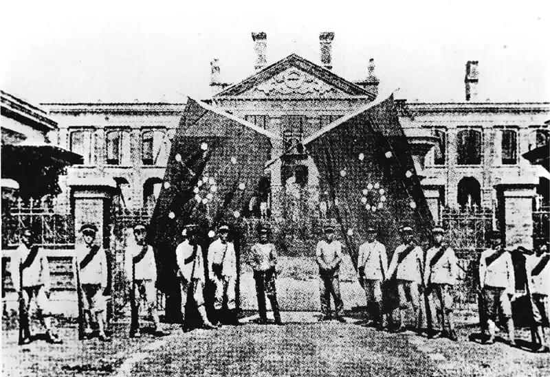 武昌起义胜利后,各省纷纷响应,宣布独立。图为革命军占领武昌城后,军政府挂起象征十八省团结一致的十八星军旗(新华社发)