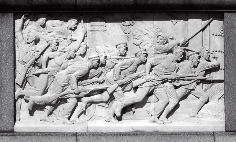 1911年10月10日,湖北新军工程第八营士兵在武昌打响了“辛亥革命第一枪”,拉开了中国完全意义上的近代民族民主革命的序幕,开启了中国人民和中华民族为实现民族独立、人民解放和国家富强、人民幸福而奋斗的壮阔历程。图为人民英雄纪念碑南侧浮雕(东)《武昌起义》(新华社记者 李欣 摄)