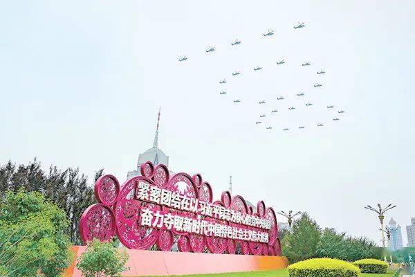 2021年7月1日,庆祝中国共产党成立100周年大会在北京天安门广场隆重举行,飞行编队飞过北京上空(图片来源:人民视觉)
