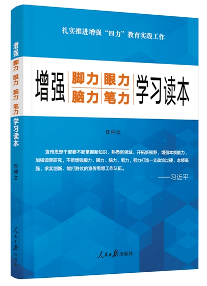 增强脚力,要求在走进群众心坎上下功夫。把基层当作最好的课堂,把群众当作最好的老师,扑下身子,沉到一线,常在路上,多到现场;增强眼力,要求在“抽丝剥茧、拨云见日”上下功夫。要善于以小见大、见微知著,既看得准、看得深,又盯得紧、盯得实;增强脑力,要求在开动脑筋、勤思多想上下功夫。坚持用习近平新时代中国特色社会主义思想武装头脑,善于学习,勤于总结,坚持用辩证唯物主义的世界观和方法论分析问题、解决问题;增强笔力,要求在“妙手著文章”上下功夫。要勤耕笔头、善于表达、妙笔生花,成为“拿笔杆子”的行家里手,创造出更多富有时代感、听得懂、记得住、印象深的优秀产品。增强脚力、眼力、脑力、笔力,仅仅是宣传思想文化干部必须具备的“内功”,还必须在“举旗帜、聚民心、育新人、兴文化、展形象”的“外功”上大有可为。