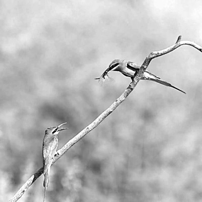 栗喉蜂虎在捕食。本报记者 周梦爽摄