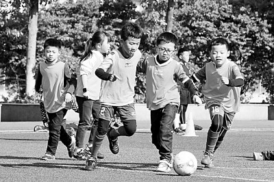 1月18日,贵州省仁怀市实验小学的学生在进行足球分组对抗赛。新华社发