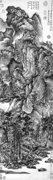 谈起如何欣赏一幅中国山水画,“卧游”一词最为常用。据说,南北朝时期的宗炳,壮年时多方游历,年纪大了便将生平所到之处画在墙壁上,期望达到澄怀观道、卧以游之的效果。虽然人们常用宗炳的故事来解释卧游,但这个词可能会引起一些人的误解,认为卧游是年龄大了,玩儿不动了,躺在床上回味自己亲身游历过的风景,有种炉火旁打盹、回忆青春的感觉。事实并非如此,卧游与真实的山水没有太大的关系,它有着更为超脱的精神追求,是一种澄怀观道的精神活动。我们可以通过东晋王羲之《兰亭序》中的说法来体味这种精神活动。王羲之在与友人度过美好的一天之后,不由得感叹时光易逝、人生短暂,进而思考人生的真谛,以及能够予以解码的方式,认为人生在世,“或取诸怀抱,悟言一室之内;或因寄所托,放浪形骸之外”,一静一动,一个向内一个向外,虽然方式不同,但均能在“欣于所遇”之际达到“快然自足,不知老之将至”的境界。审视王羲之所说的这两种方式,一个向内心去寻求,另一个则通过体察外在的世界去寻找。欣赏中国山水画时所说的卧游,便是王羲之所谓的“取诸怀抱,悟言一室之内”,是一种身居斗室,通过画家构建的山水世界去体味万物、思考古今和人生,进而提高自身精神境界的过程。